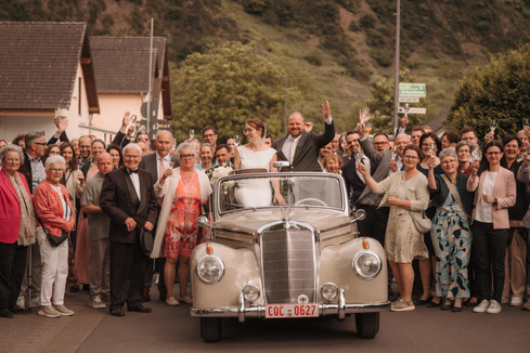 Eine standesamtliche Hochzeit auf der Burg in Cochem. Hoch über der Mosel, mit Blick auf die Weinberge, haben sich die beiden das Ja-Wort gegeben und damit einen ganz besonderen Tag begonnen.